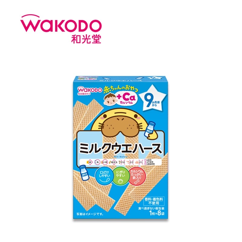 和光堂【9ヶ月頃から】 【離乳食 ベビーフード】 赤ちゃんのおやつ+Ca カルシウムミルクウエハース 1枚×8袋/盒